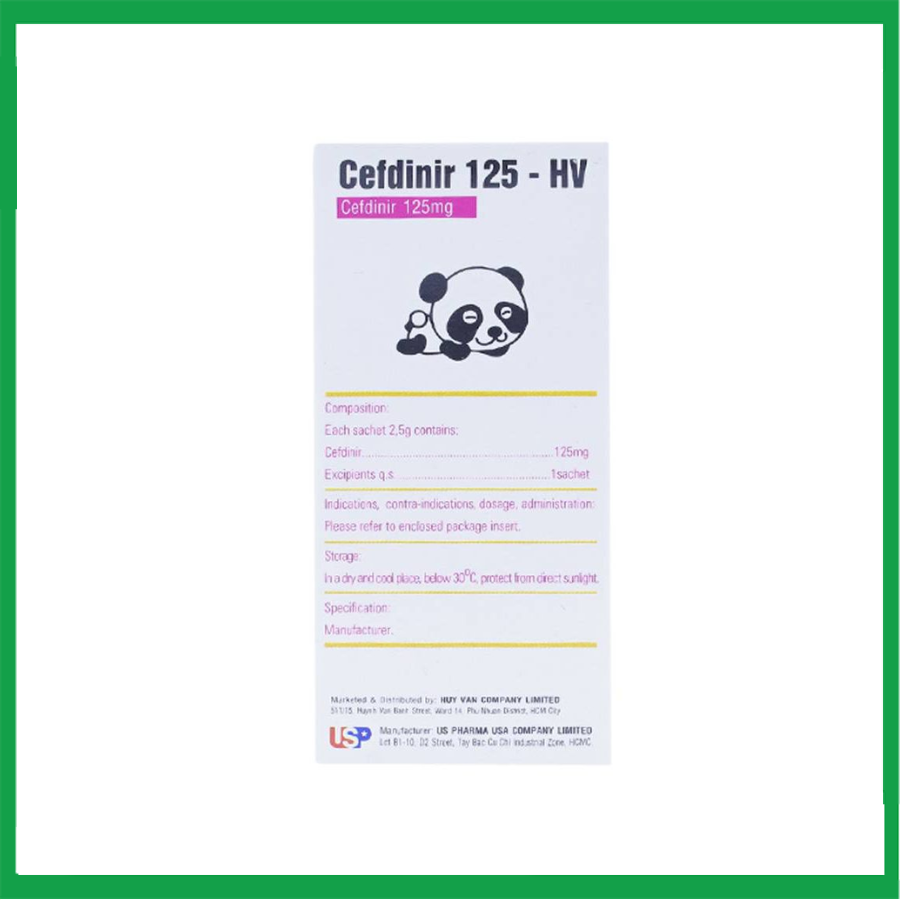 Thuốc Cefdinir 125-HV là sản phẩm của US Pharma USA, chứa dược chất chính là cefdinir – kháng sinh cephalosporin thế hệ thứ 3, được dùng để trị các trường hợp nhiễm khuẩn nhẹ đến vừa, gây ra bởi những vi khuẩn nhạy cảm.