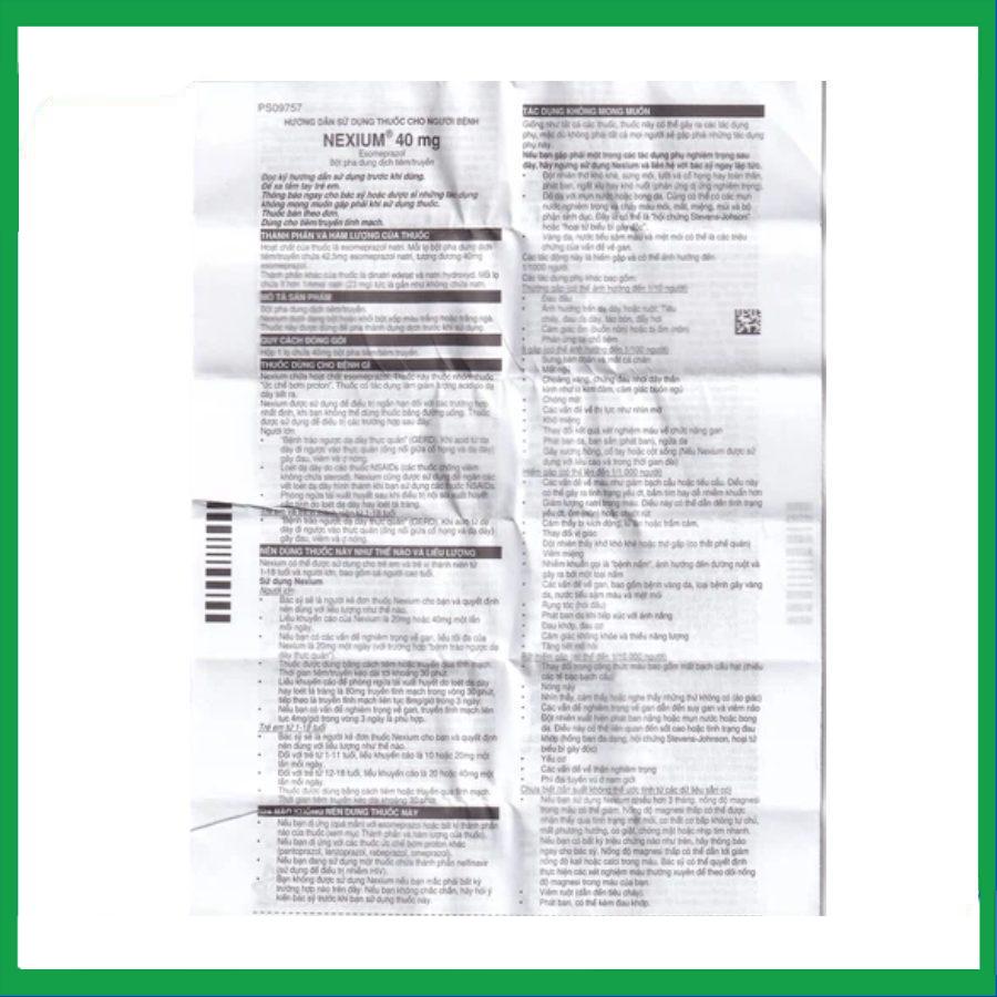Bột pha tiêm Nexium 40mg điều trị kháng tiết dịch vị, trào ngược dạ dày – thực quản (1 lọ)