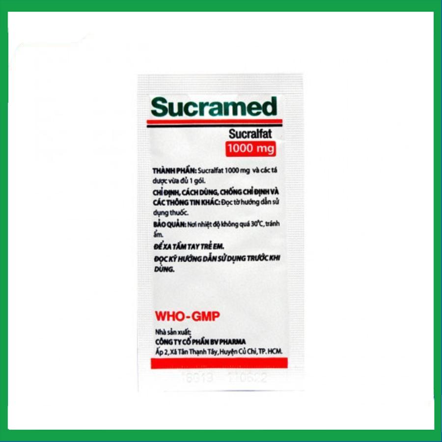 Thuốc Sucramed 1g được sản xuất bởi Công ty Cổ phần BV Pharma, với thành phần chính Sucralfate, là thuốc dùng để điều trị loét dạ dày, tá tràng lành tính, viêm dạ dày mạn tính, phòng tái phát loét dạ dày, tá tràng hoặc điều trị chứng trào ngược dạ dày thực quản.
