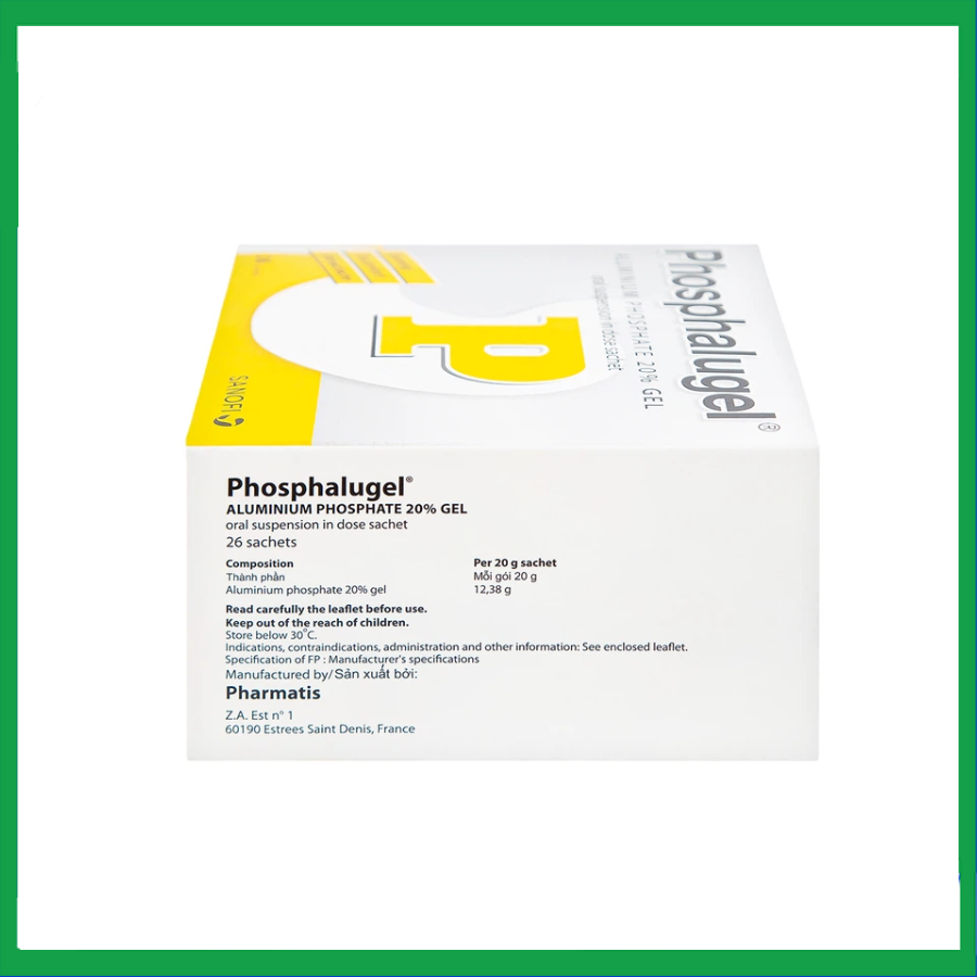 Thuốc Phosphalugel là sản phẩm của Pharmatis (Pháp) với thành phần chính là Coloidal aluminium phosphate, thuộc loại thuốc kháng acid (antacid) được dùng khá phổ biến để giúp cải thiện, giảm nhẹ các triệu chứng tiêu hóa bao gồm đau, bỏng rát do axit gây ra trong các bệnh lý viêm loét dạ dày hoặc thực quản.