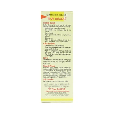 Thái Dương được thành lập vào năm 2000, trực thuộc công ty mẹ Sao Thái Dương. Sau hơn 20 năm hình thành và phát triển, không chỉ dẫn đầu thị trường dược mỹ phẩm Việt Nam, Thái Dương vô cùng được đón nhận trên thương trường quốc tế, đặc biệt tại một số nước như: Pháp, Đức, Úc, Mỹ,... Theo đuổi tôn chỉ “Chất lượng tạo thịnh vượng”, Thái Dương luôn chăm chút cho bảng thành phần sản phẩm với các chiết xuất từ thảo dược hoàn toàn tự nhiên, lành tính. Ngoài ra, nhà máy sản xuất của công ty đạt chứng nhận GMP và chứng chỉ ISO, đảm bảo chất lượng an toàn cho sản phẩm.
