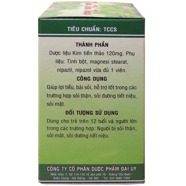 Viên Kim Tiền Thảo Đại Uy được biết đến nổi tiếng với công dụng lợi tiểu, làm ngừng sự phát triển và làm tan sỏi thận, sỏi mật, sỏi đường tiết niệu theo cơ chế “nước chảy đá mòn”. Ngoài ra, sản phẩm còn được dùng để phòng ngừa bệnh sỏi thận cho những đối tượng có nguy cơ cao
