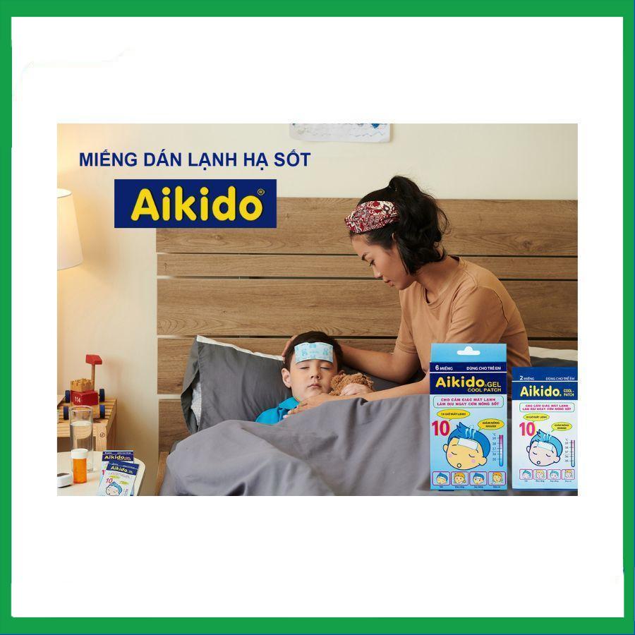 - Miếng dán hạ sốt Aikido Gel Cool Patch 6 miếng cho cảm giác mát lạnh, làm dịu ngay cơn sốt khó chịu. Khi bé bị sốt cao, có nguy cơ co giật hãy dùng miếng dán lạnh Aikido để dán lên trán, lưng, bẹn, đùi...