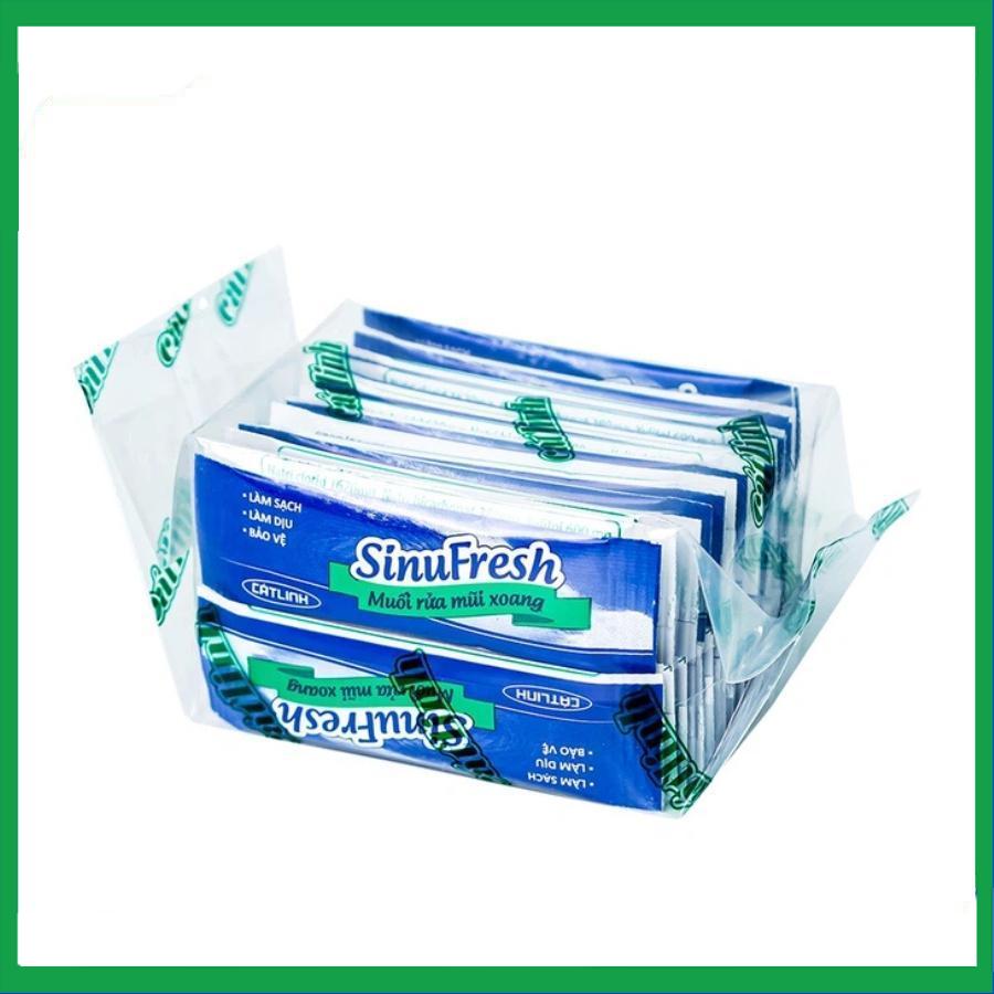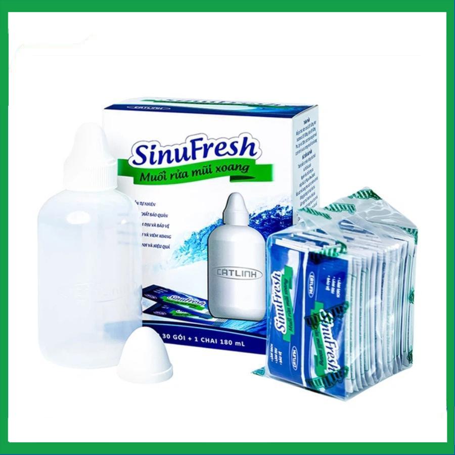 Muối rửa mũi xoang SinuFresh Cát Linh dùng cho khô mũi, ngạt mũi, chảy nước mũi (30 gói + 1 chai 180ml)