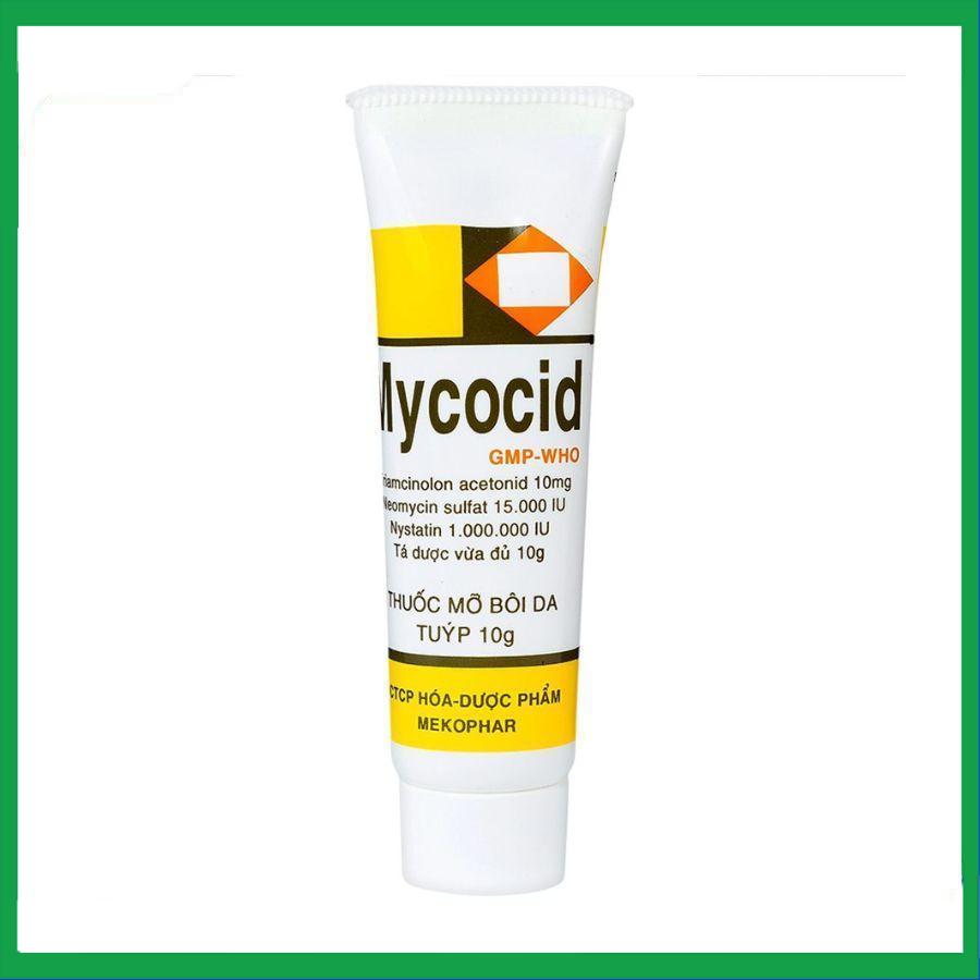 Thuốc Mycocid của Công ty CP Hóa - Dược phẩm Mekophar có thành phần chính là Triamcinolone, Neomycin sulphate, Nystatin giúp điều trị bệnh lý da nhạy cảm với corticosteroid có bội nhiễm vi khuẩn hay vi nấm; bệnh viêm da kèm nấm, eczema trẻ em, ngứa da, ngứa âm hộ.Mycocid mua ở đâu? Giá bao nhiêu?
