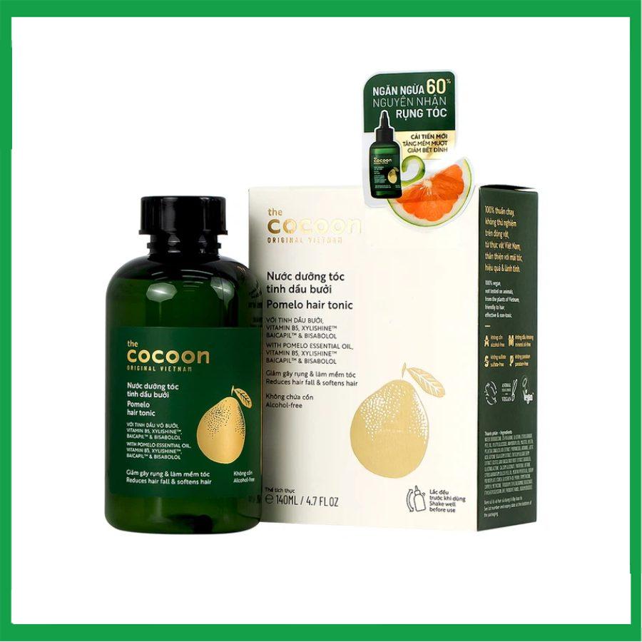 Nước dưỡng tóc tinh dầu bưởi Cocoon là sản phẩm dưỡng tóc đến từ thương hiệu mỹ phẩm thuần chay Cocoon của Việt Nam. Nước dưỡng tóc tinh dầu bưởi là giải pháp giúp bạn xóa tan đi nỗi lo rụng tóc, phù hợp với tình trạng tóc rụng, tóc thưa mỏng, yếu. Với thành phần chủ đạo gồm tinh dầu vỏ bưởi có đặc tính chống oxy hóa và làm sạch, kết hợp hoạt chất Xylishine và vitamin B5 cung cấp dưỡng chất cho da đầu, giúp thúc đẩy sự phát triển tóc chắc khỏe. Đồng thời, phiên bản nâng cấp được bổ sung thêm hai hoạt chất là Baicapil và Bisabolol hỗ trợ làm giảm tình trạng rụng tóc và tăng cường độ chắc khoẻ cho mái tóc.