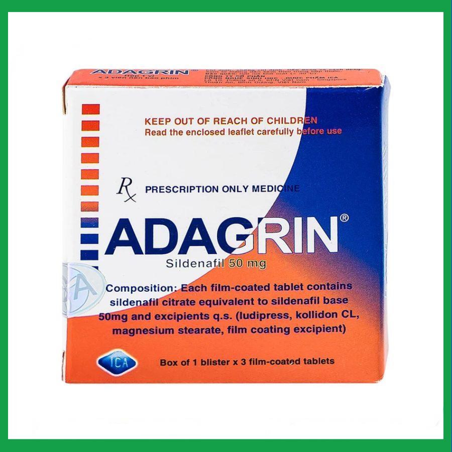 Adagrin của Công ty Cổ phần Công nghệ Sinh học – Dược phẩm ICA, thành phần chính là Sildenafil, là thuốc dùng để điều trị chứng rối loạn cương dương, hay còn gọi là chứng bất lực ở đàn ông.
