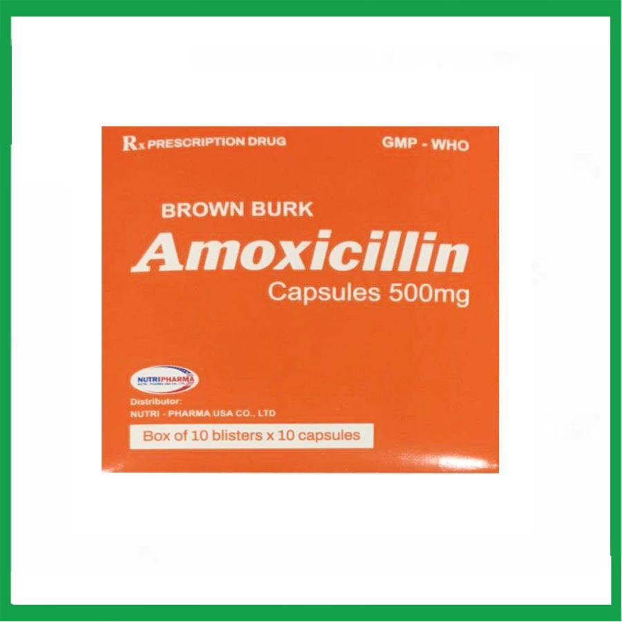Thuốc Amoxicillin 500mg Brown Burk điều trị nhiễm khuẩn (10 vỉ x 10 viên)