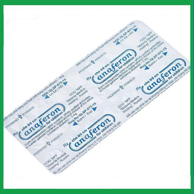 Anaferon for children (Anaferon cho trẻ em) là một sản phầm của Công ty Materia Medica Holding với thành phần chính là các kháng thể gắn với interferon gamma ở người được tinh chế bằng sắc ký ái lực. Thuốc được dùng trong điều trị và dự phòng nhiễm virus.2. Thuốc Anaferon For Children mua ở đâu? Giá bao nhiêu?