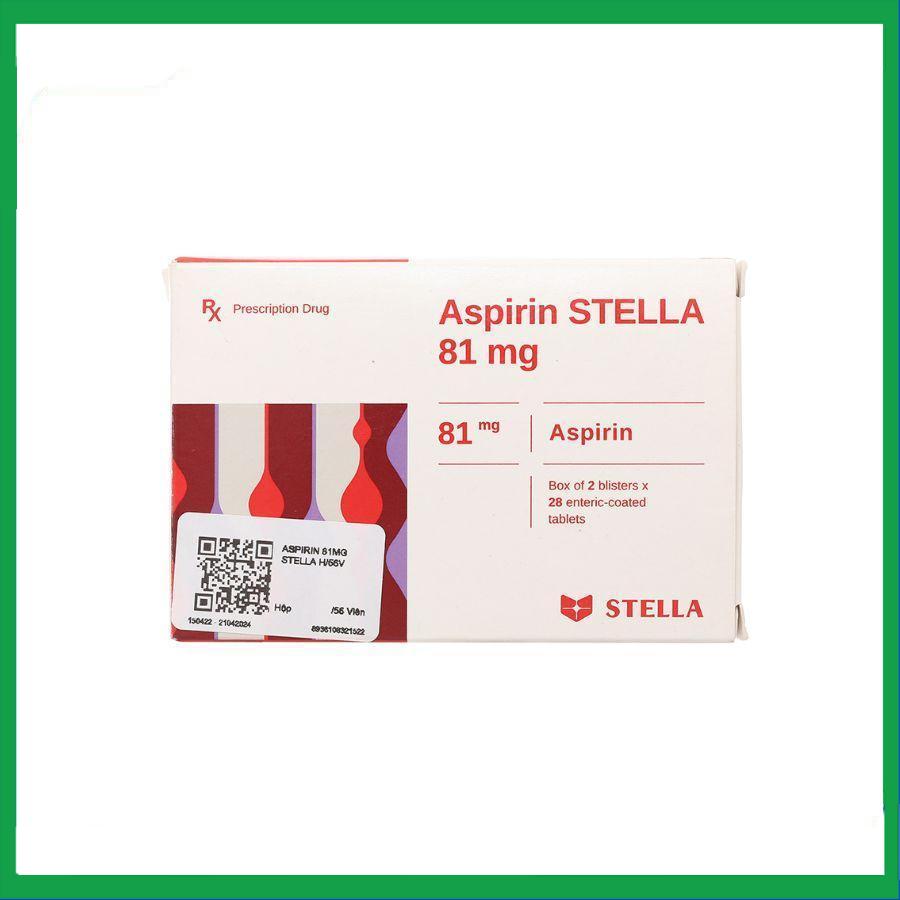 Thuốc Aspirin 81mg là sản phẩm của Stellapharm với thành phần chính Aspirin giúp dự phòng thứ phát nhồi máu cơ tim và đột quỵ ở bệnh nhân có tiền sử về các bệnh này.
