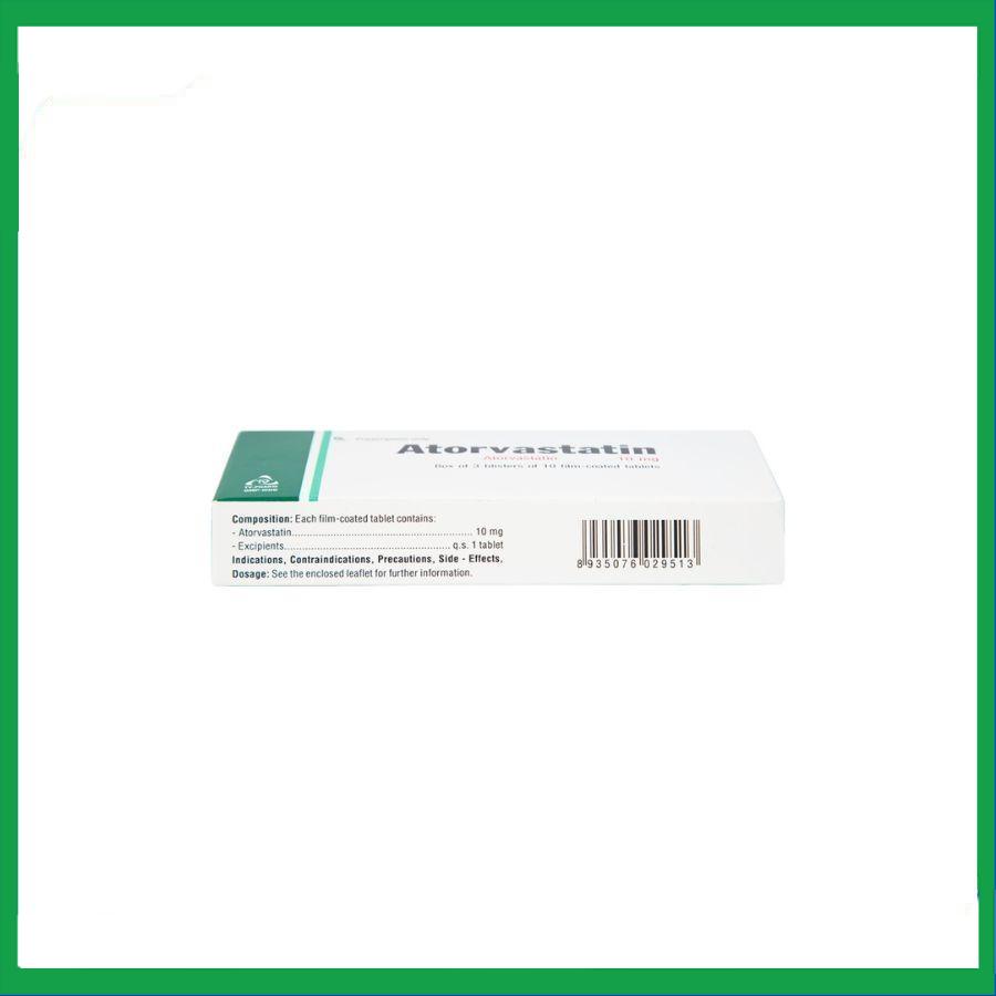 Thuốc Atorvastatin 10mg điều trị tăng cholesterol toàn phần, LDL-cholesterol (3 vỉ x 10 viên)