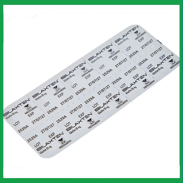 Bilaxten 20mg dạng viên nén của Công ty sản xuất Menarini (Pháp) có thành phần chính là Bilastine. Bilaxten 20mg là thuốc điều trị triệu chứng của bệnh viêm mũi, viêm kết mạc (theo mùa và mạn tính), nổi mề đay.
