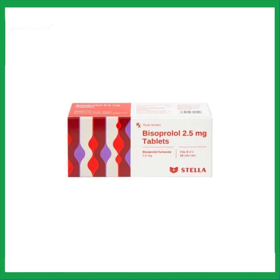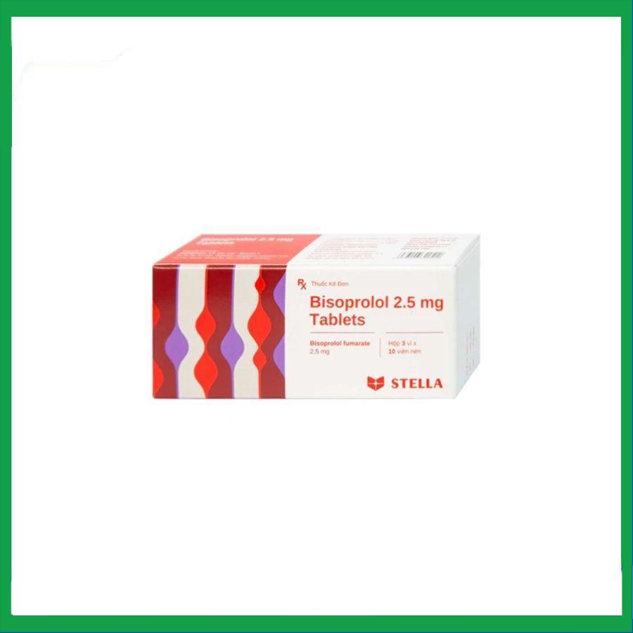 Thuốc Bisoprolol 2.5mg Tablets Stella điều trị tăng huyết áp, đau thắt ngực mạn tính ổn định (3 vỉ x 10 viên)