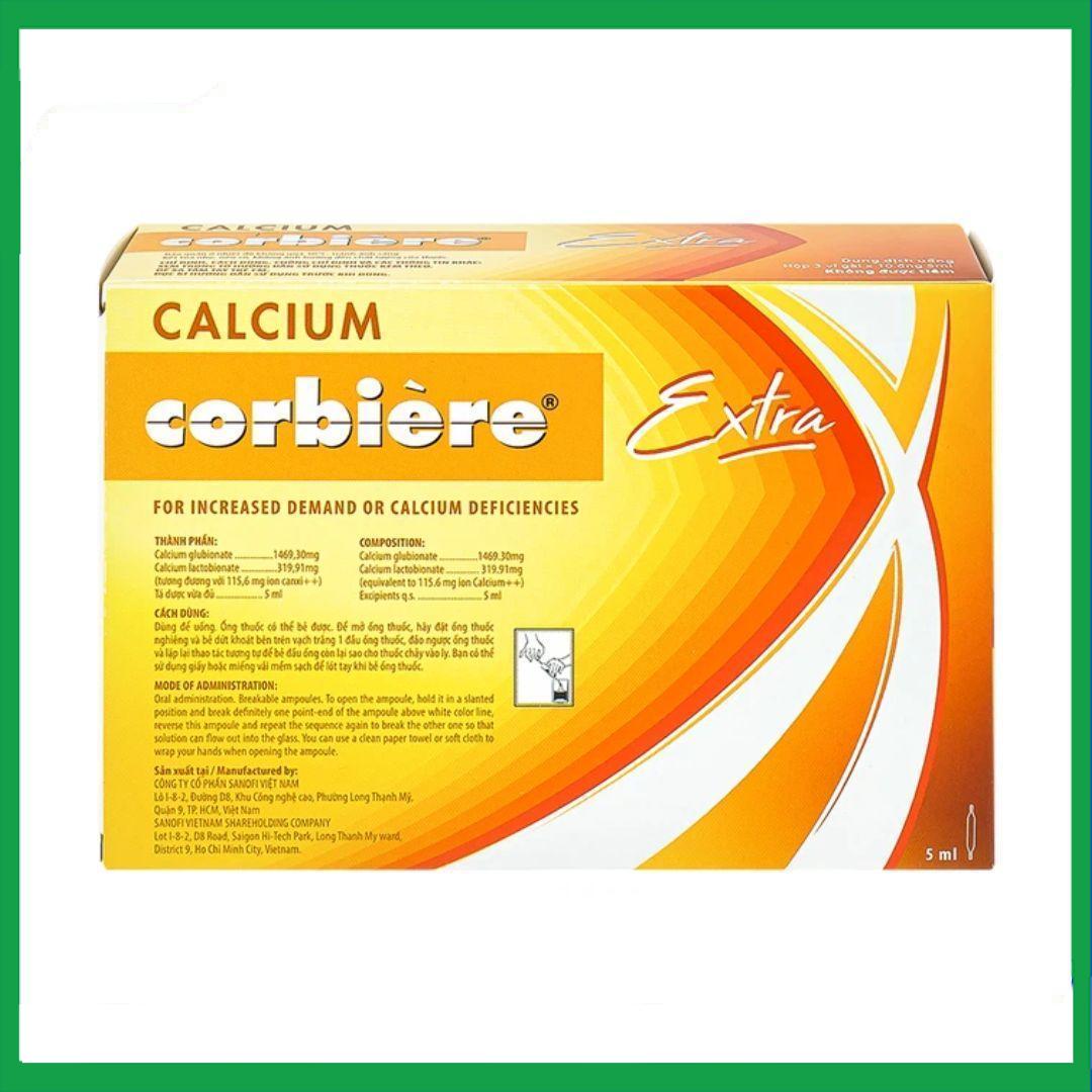 Dung dịch uống Calcium Corbiere Kids Extra 5ml cho trẻ em và người lớn là sản phẩm của Dược phẩm Sanofi có thành phần chính gồm Calcium Glubionate và Calcium Lactobionate dùng trong trường hợp bổ sung canxi có nhu cầu canxi cao như: Phụ nữ mang thai và cho con bú, trẻ em đang lớn,giai đoạn hồi phục, gãy xương, chứng còi xương và hỗ trợ điều trị loãng xương.
