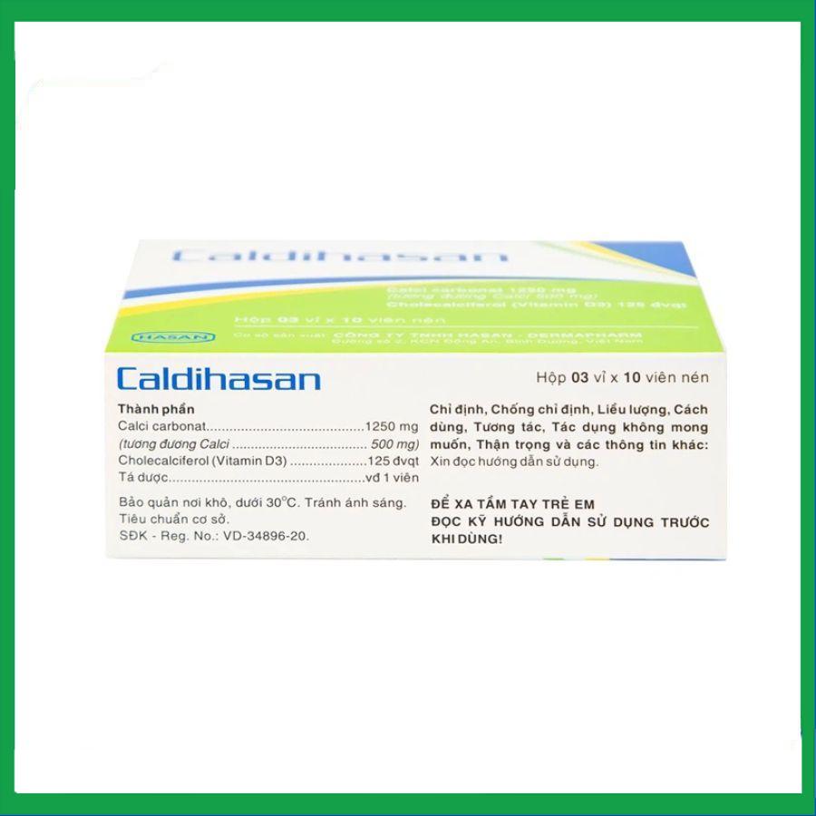 Caldihasan là sản phẩm của Công ty TNHH Hasan – Dermapharm, có thành phần chính là calci carbonat và cholecalciferol (Vitamin D3). Thuốc dùng để bổ sung khoáng chất và vitamin; phòng và điều trị loãng xương ở người lớn, còi xương ở trẻ em; bổ sung calci và vitamin D hàng ngày trong giai đoạn tăng trưởng; phụ nữ có thai và cho con bú hay do chế độ ăn thiếu calci.