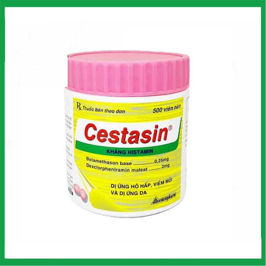 Cestasin là thuốc gì? Cestasin (lọ 500 viên nén) chứa Betamethasone và Dexclorpheniramin có tác dụng chống viêm, chống dị ứng.