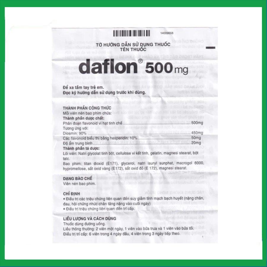 Daflon 500mg của Les Laboratoires Servier Industries, thành phần chính flavonoid vi hạt tinh chế là thuốc tác động trên hệ thống tĩnh mạch được sử dụng để điều trị các triệu chứng liên quan đến suy giảm tĩnh mạch bạch huyết và các triệu chứng liên quan đến trĩ cấp.