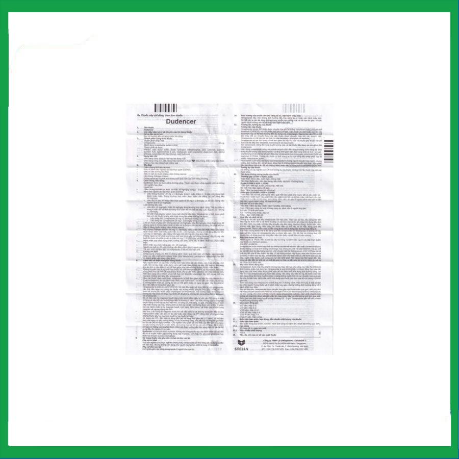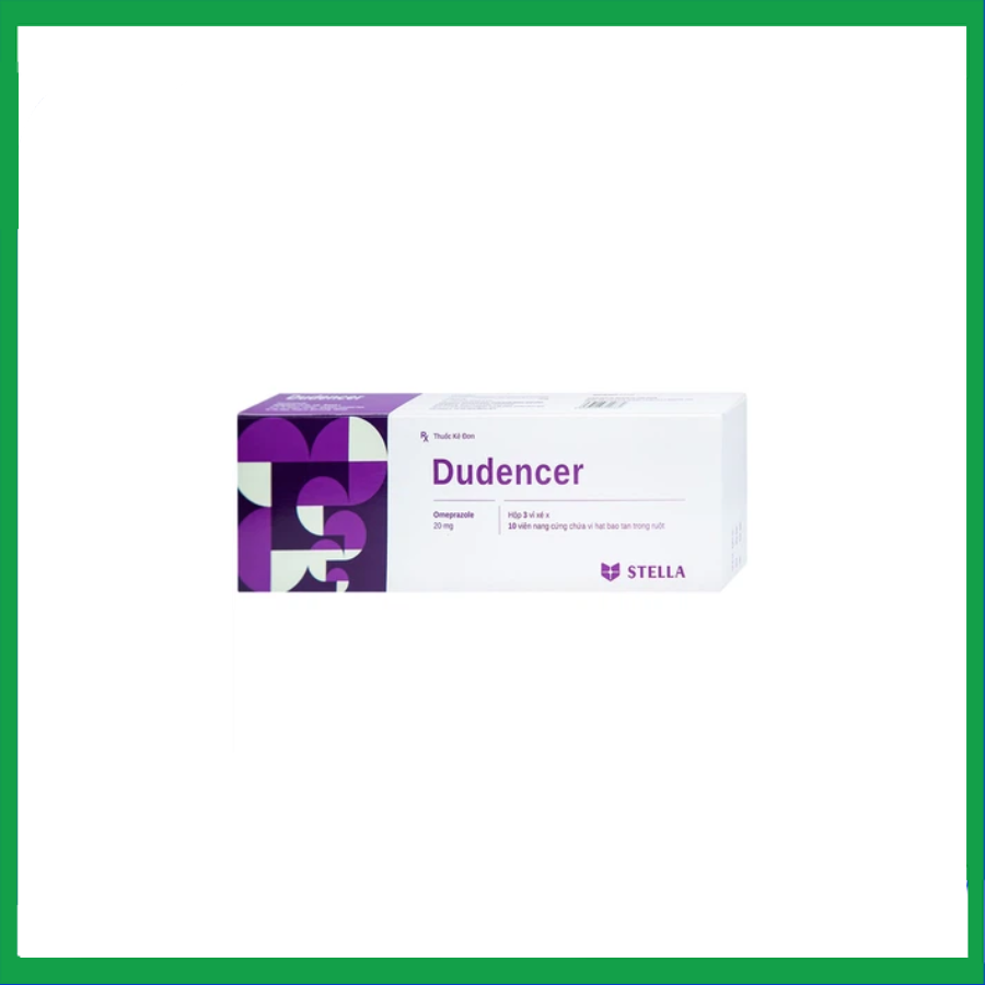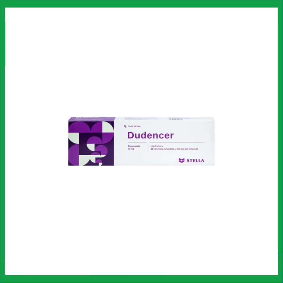 Dudencerr 20 của Công ty TNHH LD Stellapharm, thành phần chính là omeprazol (dưới dạng vi hạt omeprazol 8,5 %).