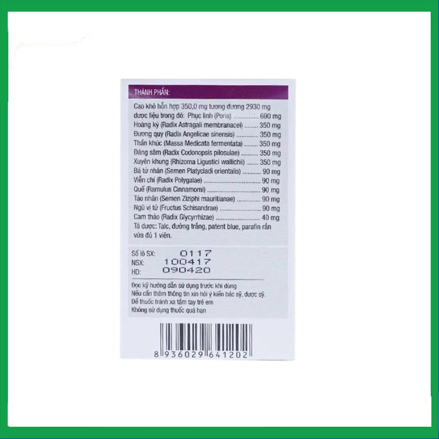 Ðiều trị tâm huyết suy tổn, tim hồi hộp, tinh thần không ổn định, lo lắng sợ hãi, mất ngủ, giấc ngủ đến chậm, ngủ mơ nhiều, suy nhược thần kinh, hay quên, mồ hôi trộm.