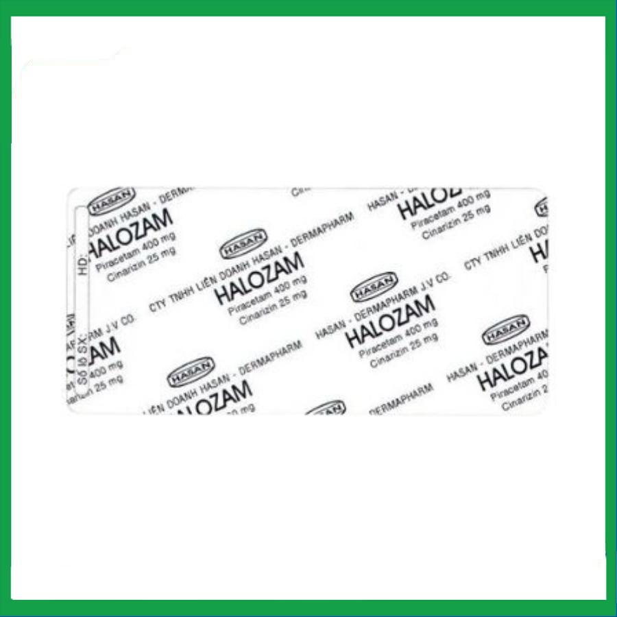 HALOZAM của Công ty TNHH Liên doanh HASAN – DERMAPHARM, hoạt chất chính là Piracetam và Cinarizin, là thuốc được dùng để điều trị rối loạn mạch máu não; suy giảm chức năng tâm thần; chứng đau nửa đầu; say tàu xe. Ngoài ra, thuốc còn được dùng để điều trị rối loạn tiền đình.
