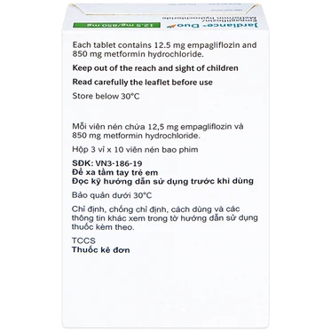 Jardiance duo 12.5 mg/850 mg Boehringer 3x10 là thuốc dùng đường uống.Liều dùng
