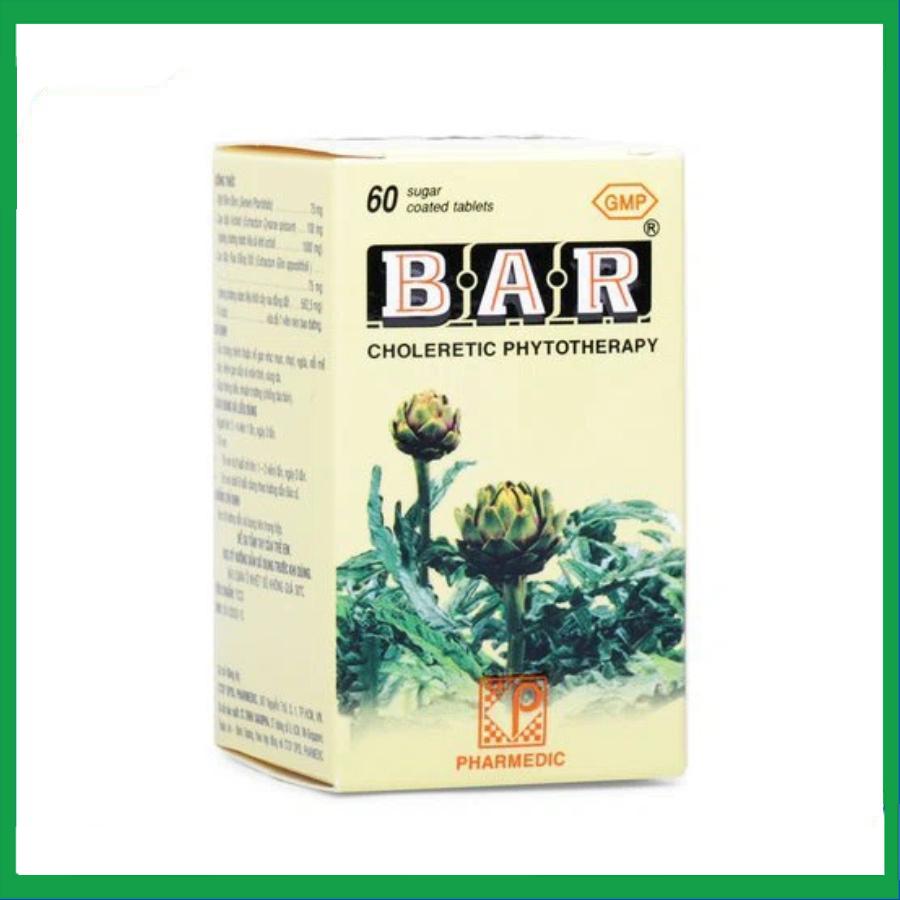 Thuốc BAR của Công ty cổ phần dược phẩm dược liệu Pharmedic, chứa bột Bìm Bìm, cao đặc Actiso, cao đặc Rau Đắng Đất có tác dụng phòng, hỗ trợ và điều trị các bệnh về gan, giúp thông tiểu, nhuận trường.