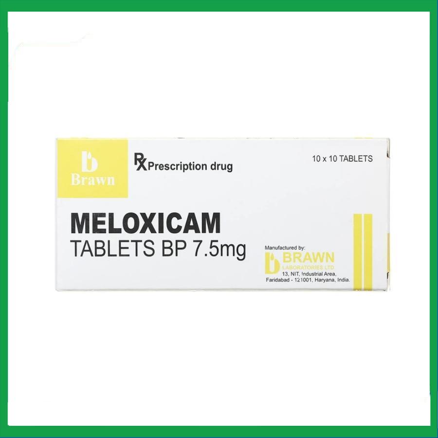 Meloxicam là sản phẩm của Brawn Laboratories Limited có thành phần chính là Meloxicam được chỉ định trong việc làm giảm các triệu chứng của bệnh viêm xương khớp mãn tính ở người lớn, viêm khớp dạng thấp, viêm cột sống dính khớp, đau lưng cấp tính và đau thần kinh tọa.