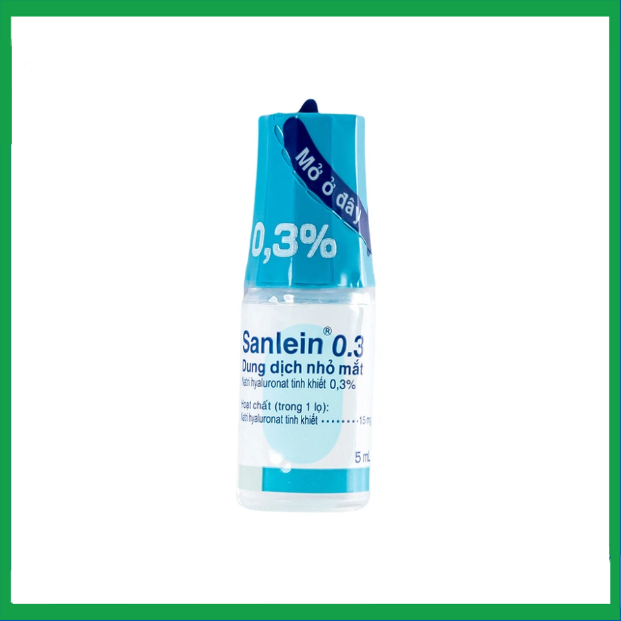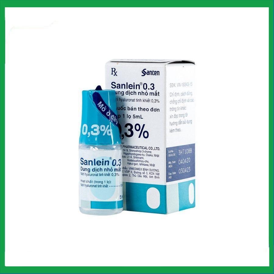 Thuốc Sanlein 0.3% được sản xuất bởi Công ty Santen Pharmaceutical Co., Ltd. - Nhật Bản. Sanlein là dung dịch nhỏ mắt chứa natri hyaluronat tinh khiết. Thuốc Sanlein 0.3% được sử dụng nhằm mục đích để điều trị rối loạn biểu mô kết – giác mạc.