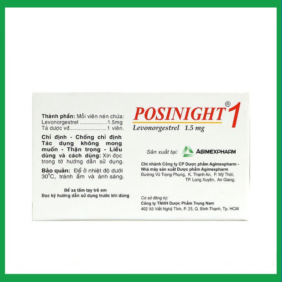 Posinight 1 được sản xuất bởi công ty cổ phần dược phẩm Agimexpharm, thành phần chính là levonorgestrel là thuốc tránh thai khẩn cấp.
