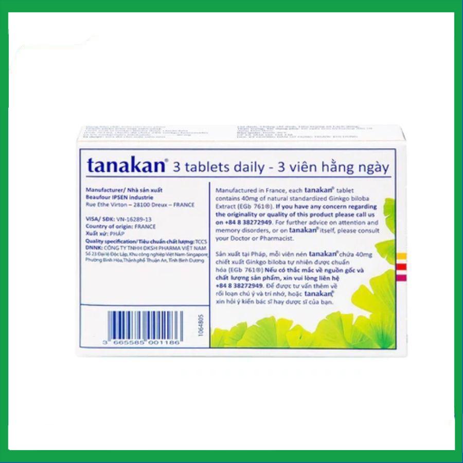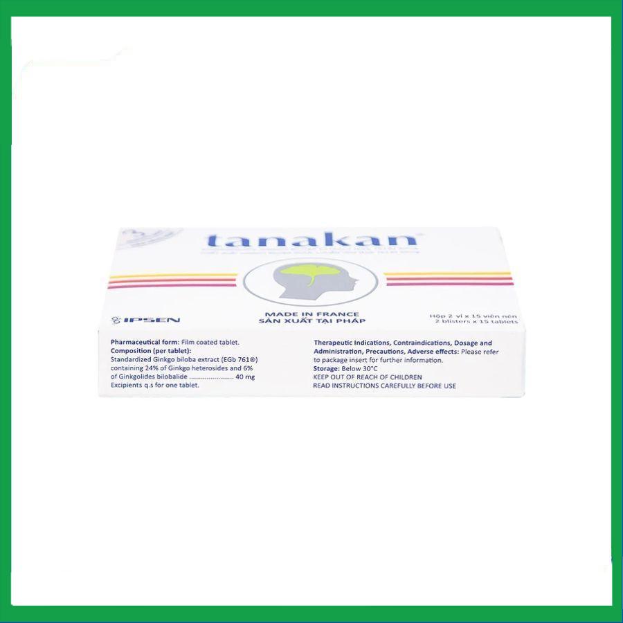Tanakan 40mg được sản xuất bởi Beaufor IPSEN Inductrie (Pháp), thành phần chính là ginkgo heterosides và ginkgolides-bilobalide. Thuốc được khuyên dùng trong: Điều trị triệu chứng rối loạn nhận thức ở người lớn tuổi mà chắc chắn không bị sa sút trí tuệ, bệnh Parkinson, rối loạn nhận thức do điều trị bệnh khác hoặc thứ phát sau trầm cảm hoặc bệnh rối loạn chuyển hóa. Tanakan được chỉ định cho người lớn và người lớn tuổi.