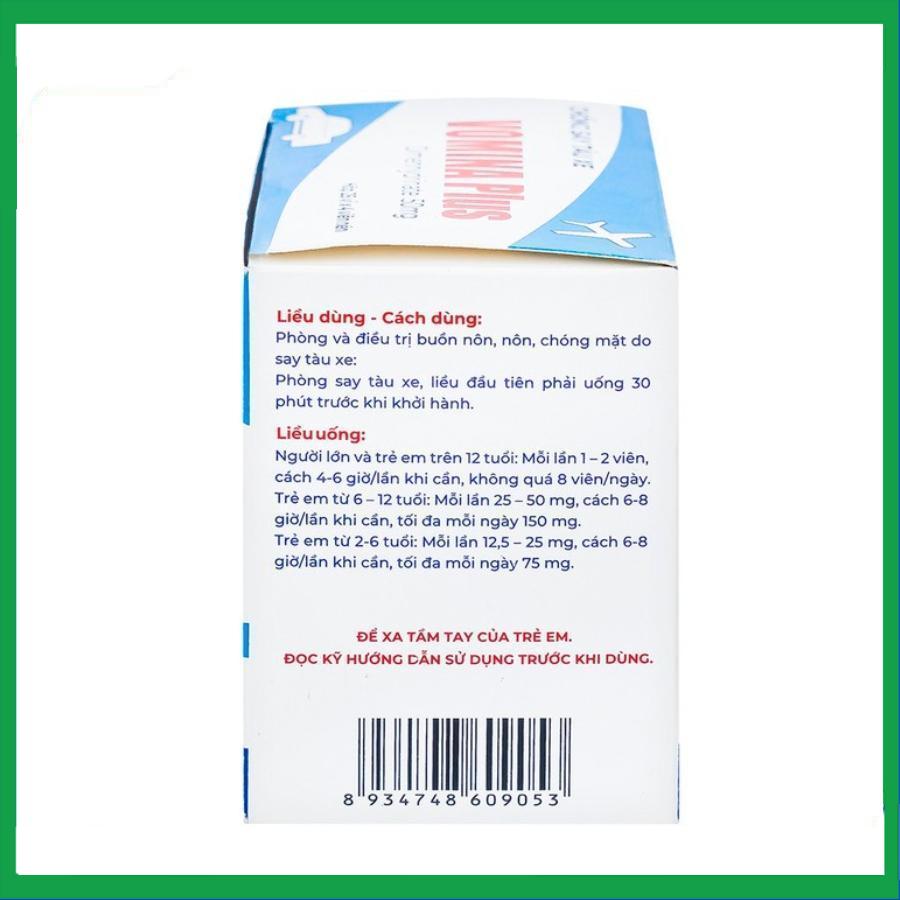 Thuốc Vomina Plus 50mg phòng và điều trị triệu chứng buồn nôn, chóng mặt khi say tàu xe (25 vỉ x 4 viên)