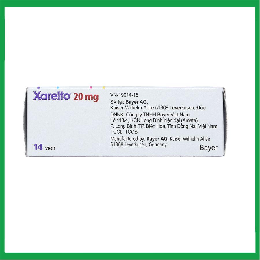 Xarelto 20mg của công ty Bayer Pharma, thành phần chính rivaroxaban, là thuốc chống đông đường uống thế hệ mới, dùng để điều trị dự phòng thuyên tắc tĩnh mạch ở bệnh nhân rung nhĩ không do bệnh lý van tim, dự phòng đột quỵ, ngoài ra, thuốc còn điều trị và dự phòng huyết khối tĩnh mạch sâu, thuyên tắc phổi. Thuốc được bào chế ở dạng viên nén bao phim hình tròn màu đỏ, mỗi viên chứa hàm lượng 20 mg rivaroxaban.