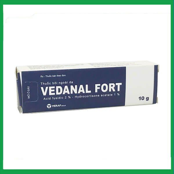 Vedanal fort Merap có thành phần chính là Acid fusidic, Hydrocortison acetat dùng điều trị viêm da, bao gồm viêm da dị ứng và viêm da tiếp xúc, có nhiễm khuẩn nghi ngờ hoặc xác định nhạy cảm với acid fusidic. Thuốc dùng ở mặt và tay về mặt thẩm mỹ và tiện lợi khi dùng ở nách và bẹn và các vùng nếp gấp da.