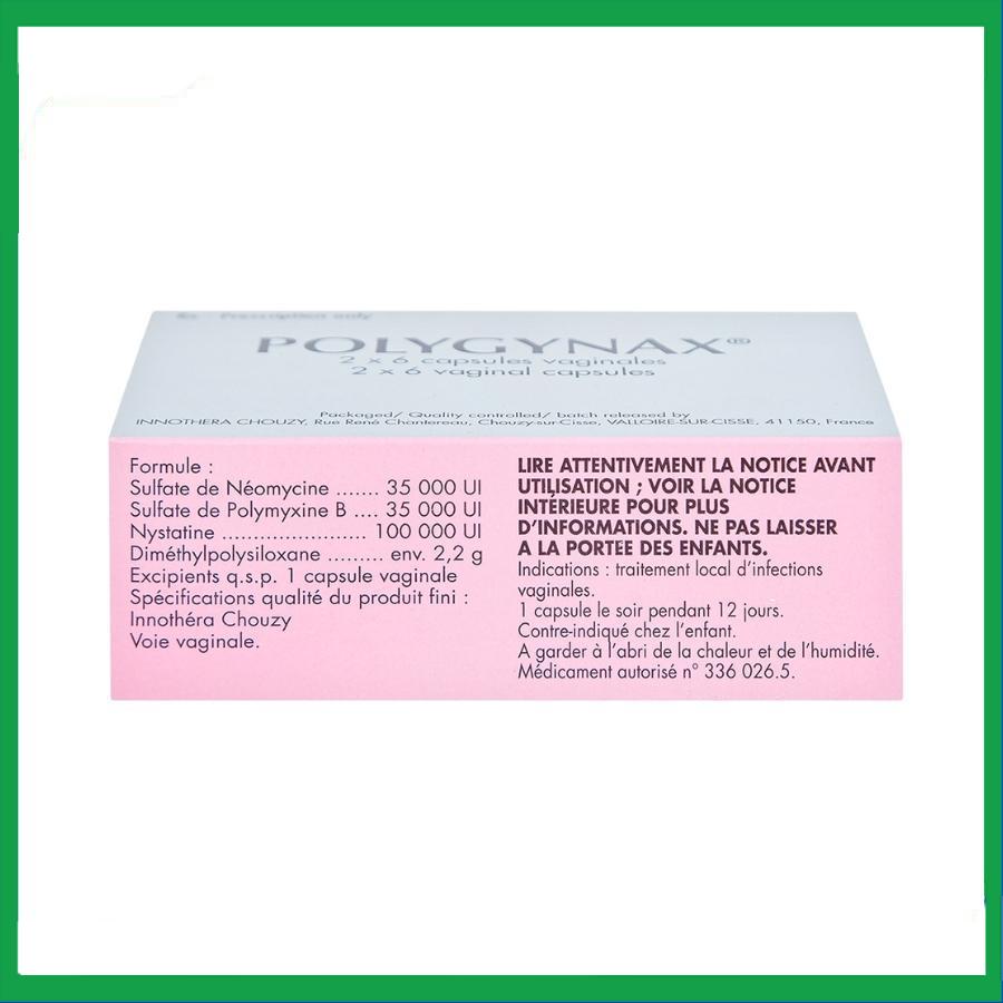 Thuốc Polygynax có hình trứng, màu vàng nhạt, được đóng trong vỉ nhôm/nhựa PVC. Hộp 2 vỉ x 6 viên nang mềm đặt âm đạo.