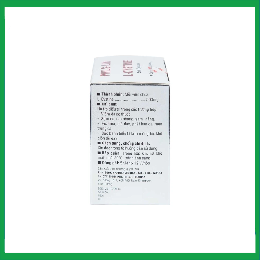 Viên nang mềm L-Cystine 500mg Phils Lin hỗ trợ điều trị viêm da do thuốc, sạm da, tàn nhang (12 vỉ x 5 viên)