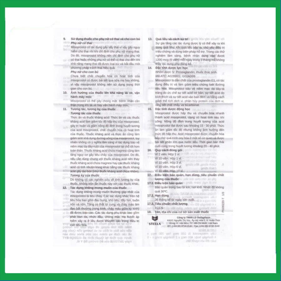Viên nén Misoprostol 200mcg giảm nguy cơ loét dạ dày (3 vỉ x 10 viên)