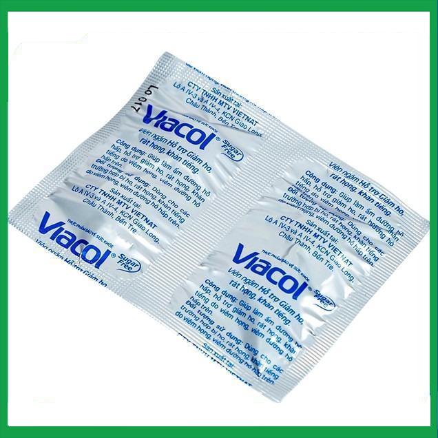 Viên ngậm Viacol với thành phần chính chiết xuất từ các dược liệu thiên nhiên, cùng với vị the mát có tác dụng tốt trong việc bổ phổi ích phế, giảm ho, rát họng, khản tiếng, giảm đau rát cổ họng.