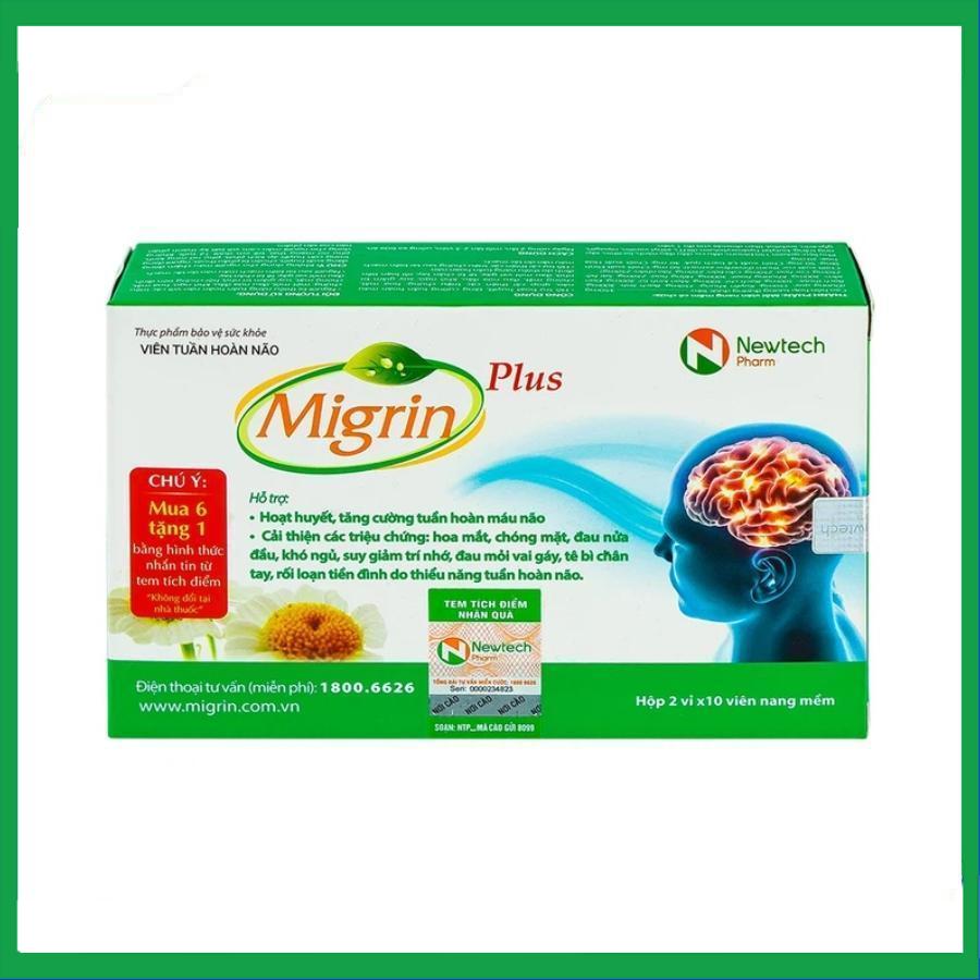 Migrin Plus hỗ trợ hoạt huyết, tăng cường tuần hoàn máu não, giúp cải thiện các triệu chứng: hoa mắt, chóng mặt, đau nửa đầu, khó ngủ, suy giảm trí nhớ, đau mỏi vai gáy, tê bì chân tay, rối loạn tiền đình do thiểu năng tuần hoàn não. Hỗ trợ cải thiện các triệu chứng sau tai biến mạch máu não do tắc mạch.