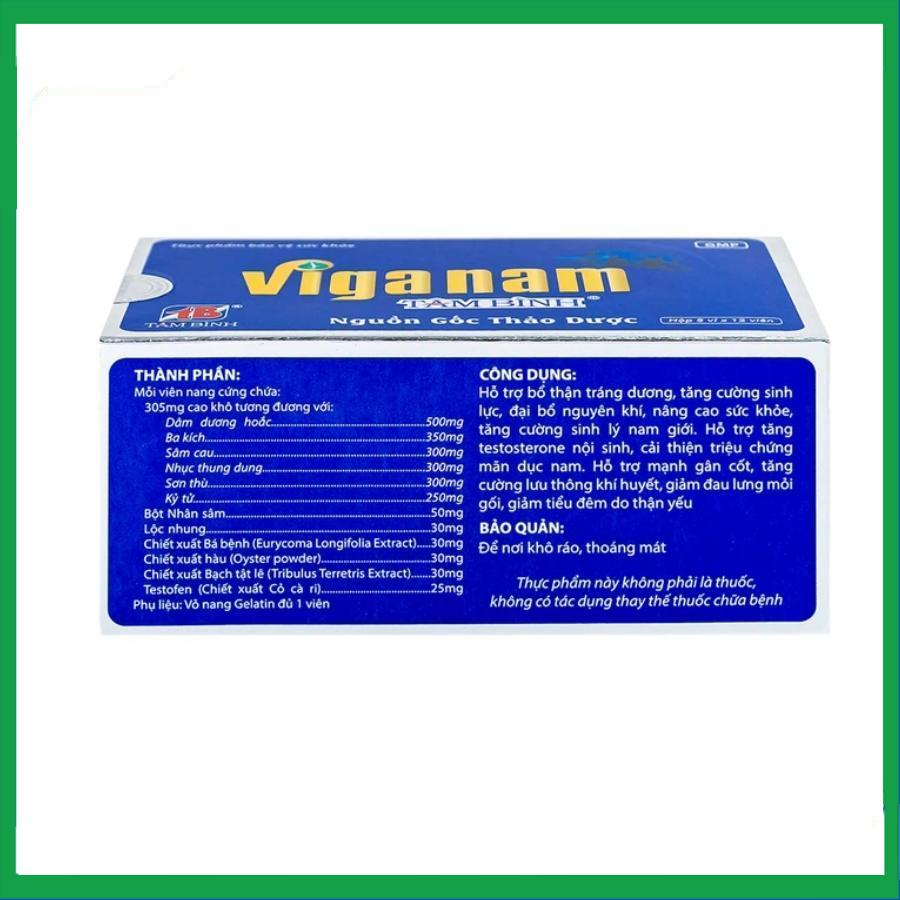 Viganam Tâm Bình được chiết xuất từ các thành phần thảo dược thiên nhiên an toàn cho sức khỏe phái mạnh. Sản phẩm có tác dụng hỗ trợ bổ thận tráng dương, tăng cường sinh lực, tăng testosterone nội sinh, mạnh gân cốt, tăng cường lưu thông khí huyết.