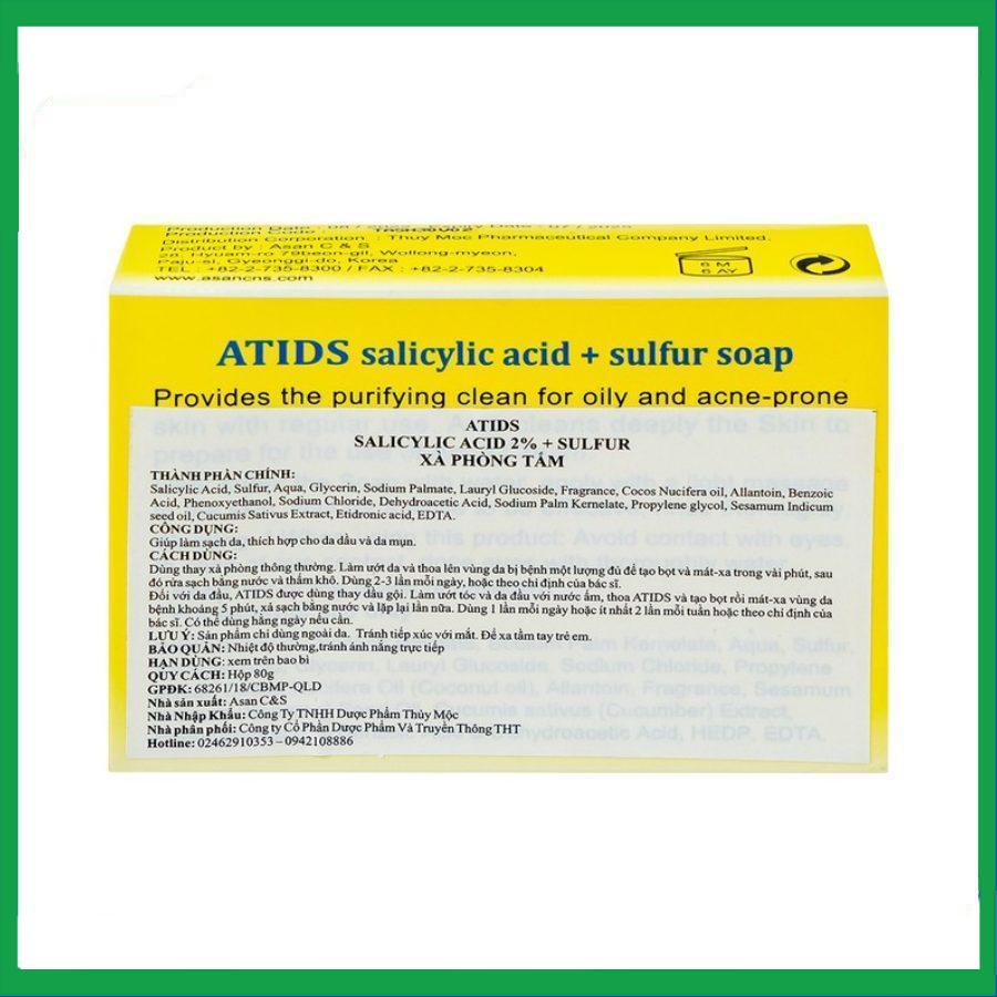Xà phòng tắm Atids Salicylic Acid 2% + Sufur 80g giúp làm sạch da, thích hợp cho da dầu, da mụn.