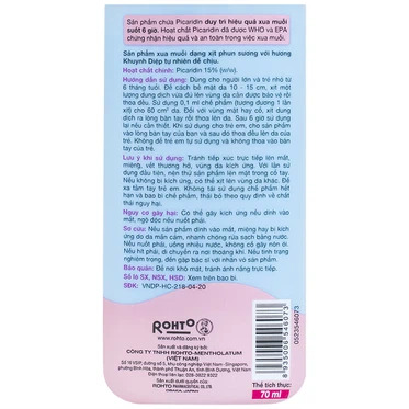 Picaridin đã nhận được chứng nhận an toàn từ WHO và EPA đối với hiệu quả xua đuổi muỗi. Tác dụng của chất này đã được kiểm chứng và được sử dụng rộng rãi trong hơn 20 năm qua trên 40 quốc gia. Hoạt chất này được các chuyên gia đánh giá là an toàn. Có thể sử dụng trực tiếp trên da nhằm mang lại hiệu quả bảo vệ tốt nhất cho trẻ em thay vì chỉ sử dụng trên quần áo. Với nồng độ 15%, Picaridin có thể bảo vệ người dùng khỏi muỗi đốt suốt 6 giờ. Sản phẩm này an toàn và dịu nhẹ với trẻ em trên 6 tháng tuổi, hoặc người sở hữu làn da nhạy cảm. Tuy nhiên, chỉ nên phun một lượng vừa đủ lên những vùng da không quá nhạy cảm như tay, chân và dùng tay thoa đều sản phẩm. Với vùng mặt và cổ, có thể xịt ra tay rồi thoa lên. Nếu có bất kỳ dấu hiệu mẫn cảm, dị ứng nào, cần ngưng sử dụng và tham vấn ý kiến của bác sĩ.Dạng xịt tiện dụng
